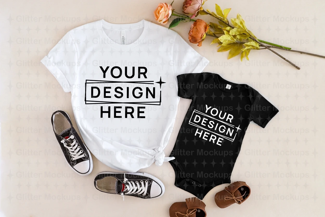 Bella Canvas 3001 White & 100B Black, Dad and Girl, Flat Lay