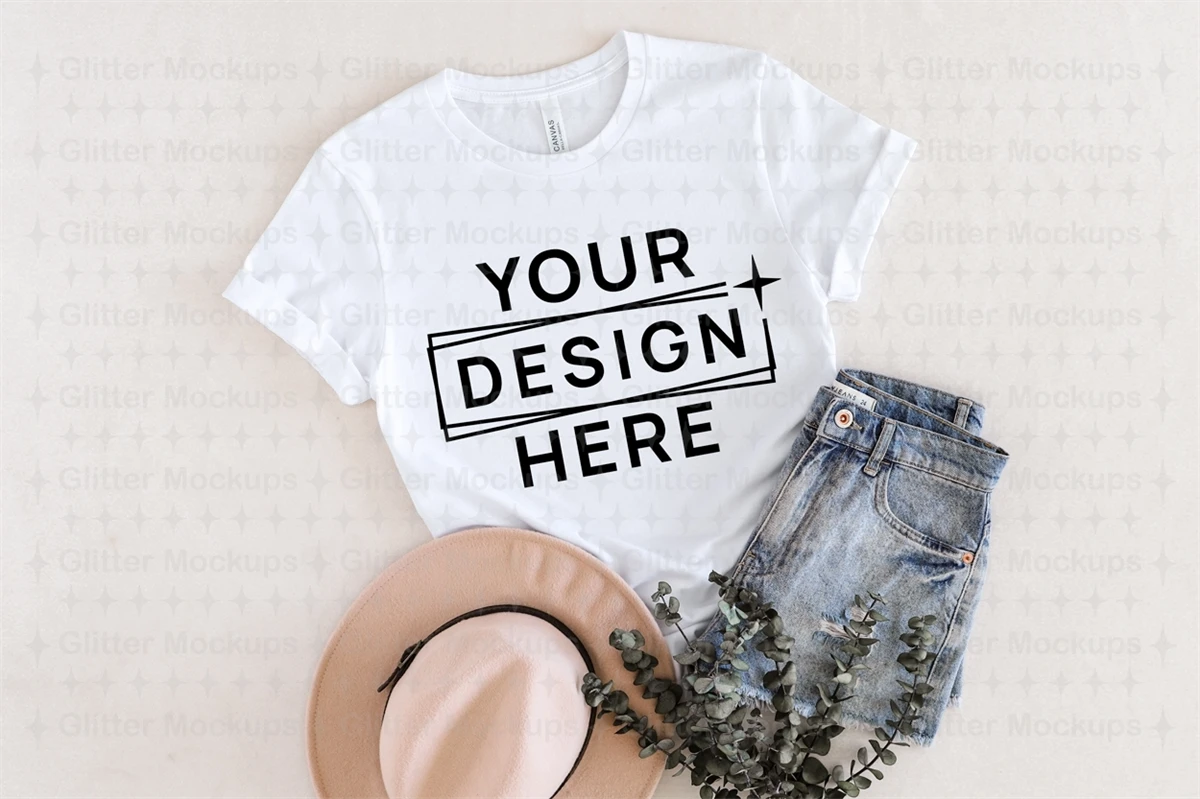 Bella Canvas 3001 White Mockup, Softsyle T-Shirt, Flat Lay