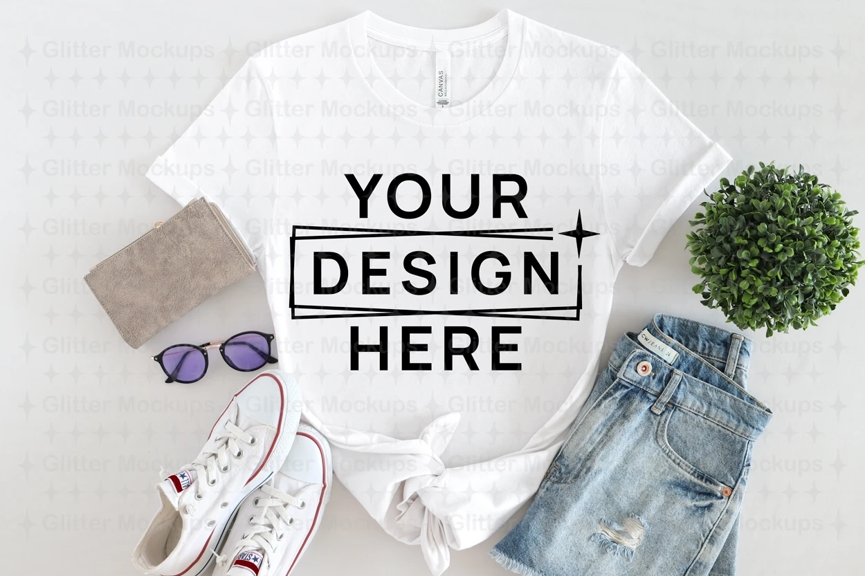 Bella Canvas 3001 White Mockup, Summer Mockup, Flat Lay, Png