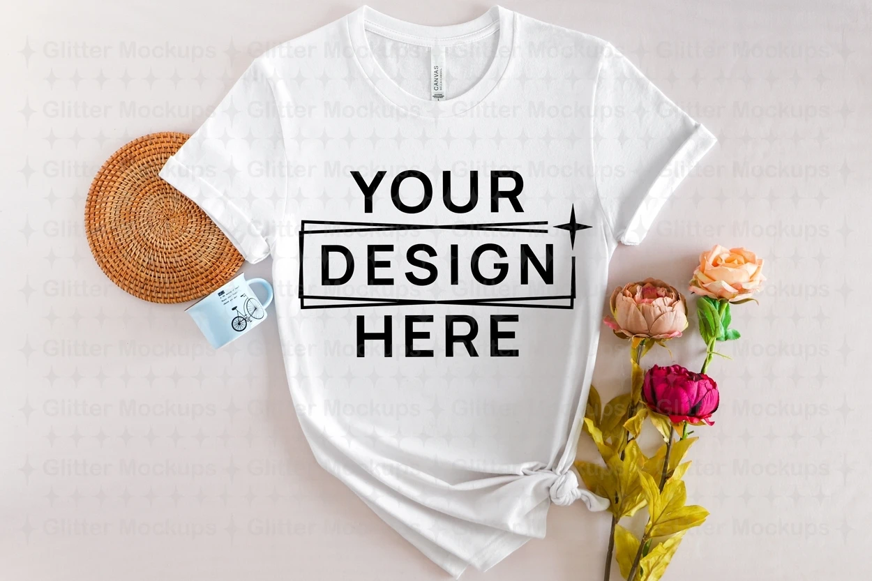 Bella Canvas 3001 White Mockup, Women T-Shirt, Flat Lay,