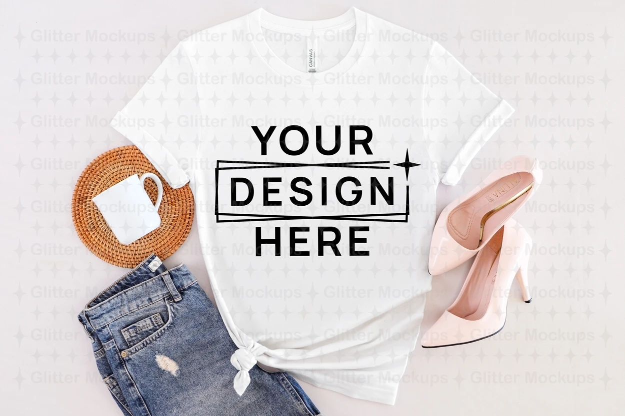 Bella Canvas 3001 White Mockup, Women T-Shirt, Styled, Png