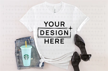 Bella Canvas 3001 White Mockup, Women T-Shirt, Styled, Png