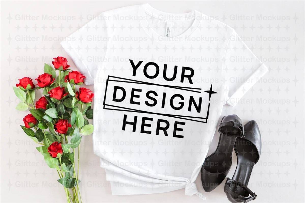 Bella Canvas 3001 White Mockup, Women T-Shirt, Styled, Png
