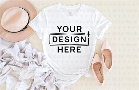 Bella Canvas 3001 White Mockup, Women T-Shirt, Styled, Png