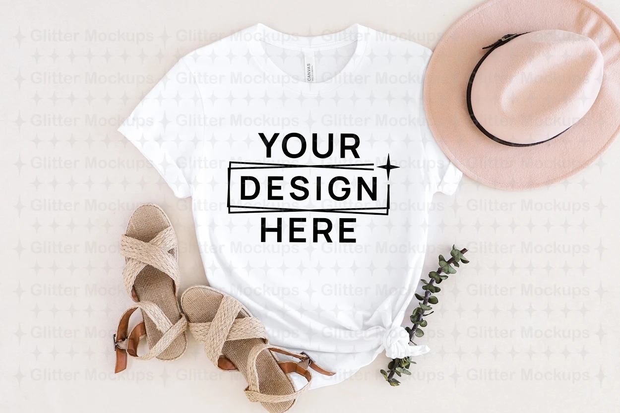 Bella Canvas 3001 White Mockup, Women T-Shirt, Styled, Png