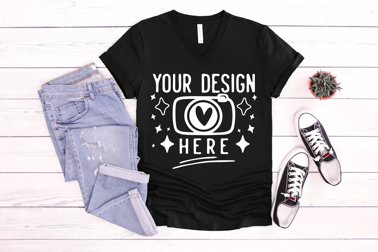 Bella Canvas 3005 Black V Neck Mockup, Bella Canvas 3005,