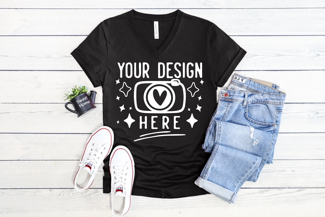 Bella Canvas 3005 Black V Neck Mockup, Bella Canvas 3005,