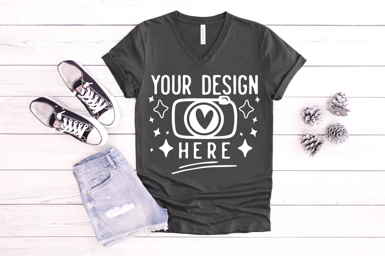 Bella Canvas 3005 Dark Grey V Neck Mockup, Bella Canvas 3005