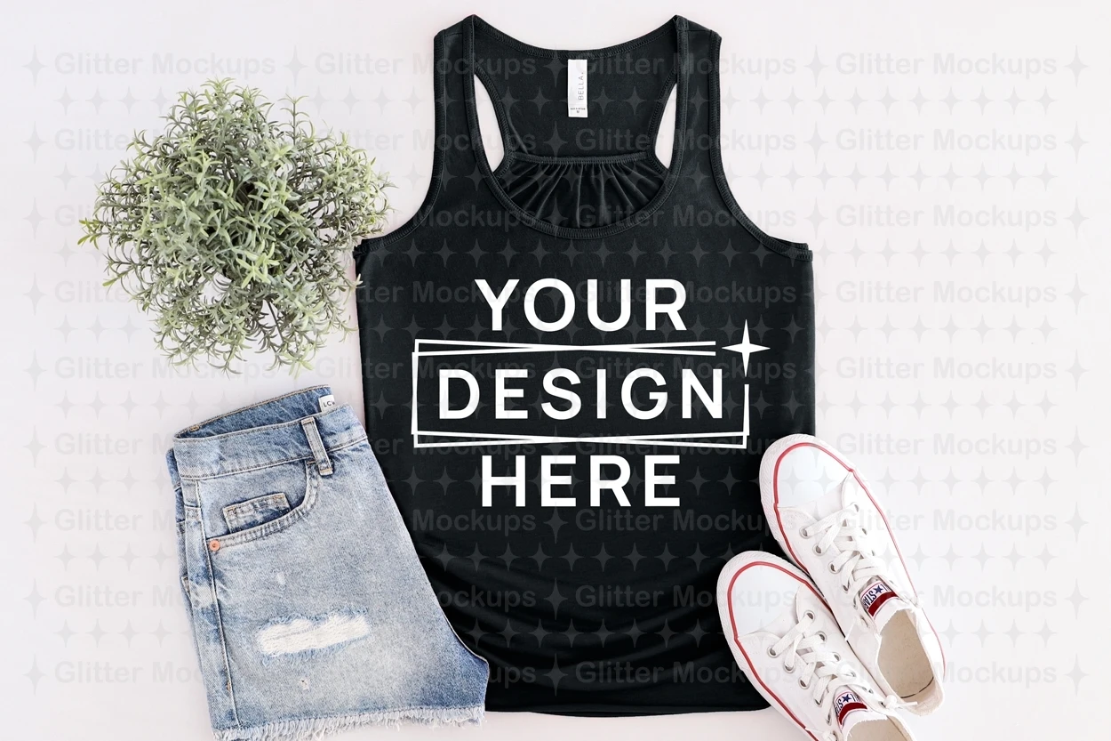 Bella Canvas 8800 Black Tank Top Mockup, Flat Lay, Png