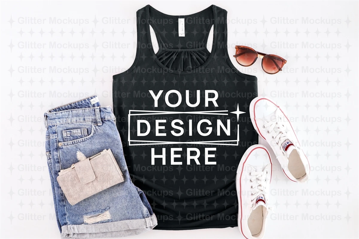 Bella Canvas 8800 Black Tank Top Mockup, Flat Lay, Png