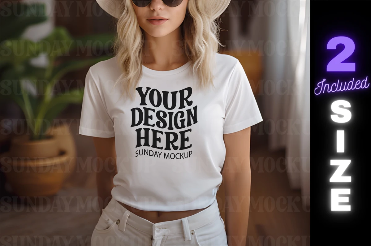Bella Canvas 3001 T-Shirt Mockup Fall T-Shirt Mockup White Woman Shirt Mockup Stylish Mockup Easy To Use Mockup Stunning Model