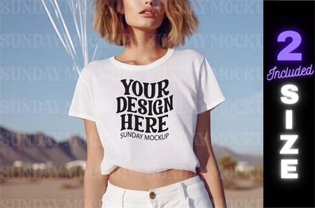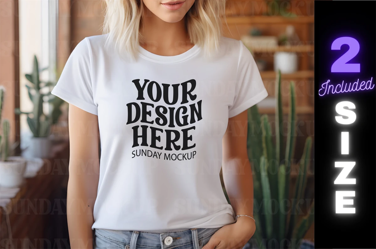 Bella Canvas 3001 T-Shirt Mockup Fall T-Shirt Mockup White Woman Shirt Mockup Stylish Mockup Easy To Use Mockup Stunning Model