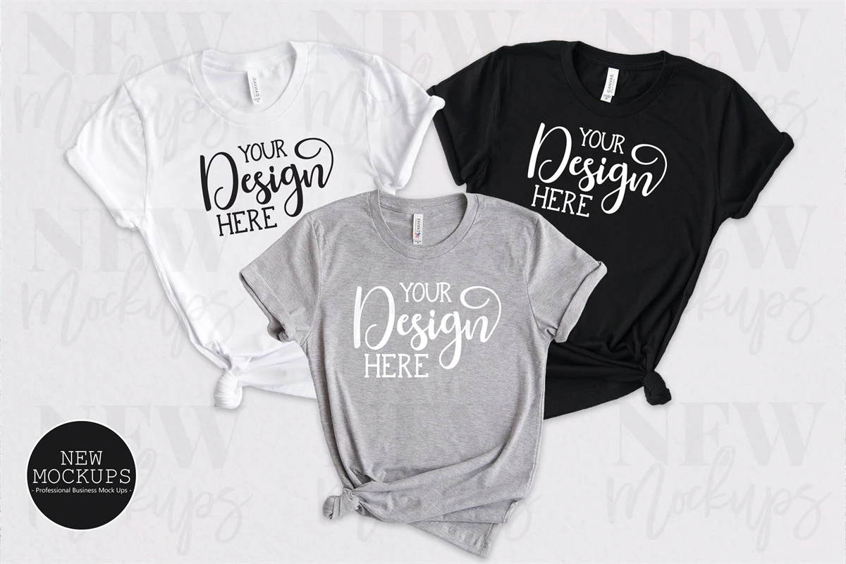 Bella Canvas 3001 White, Black, Athletic Heather Family T-Shirt Mockup