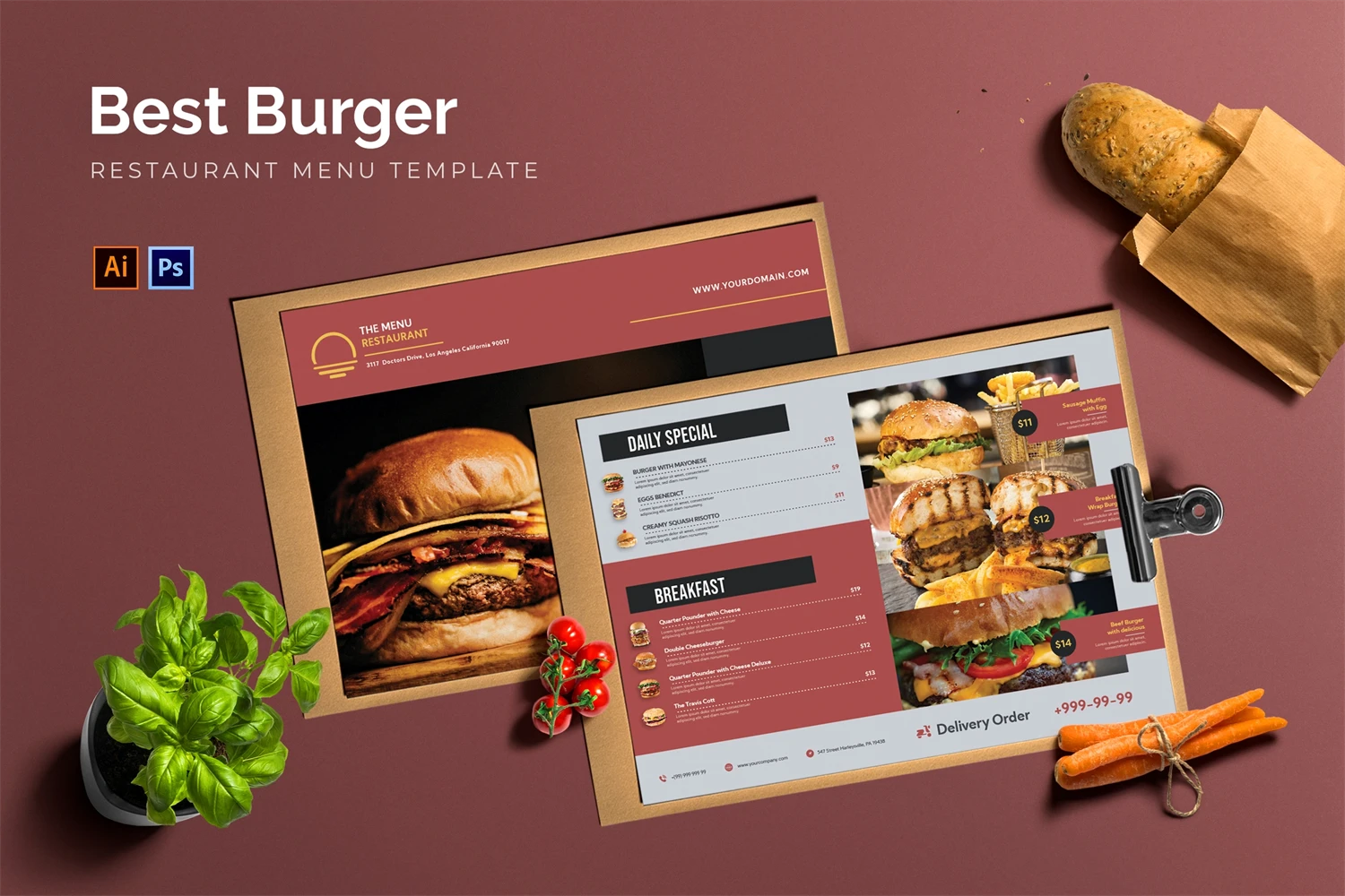 Best Burger Menu - Restaurant Menu. This template is great for your business and will make your customers interested, elegant, and easily editable according to your needs, this restaurant menu is perfect for, promos, cafes, hotels, resort shops online. etc. I hope you enjoy this restaurant menu