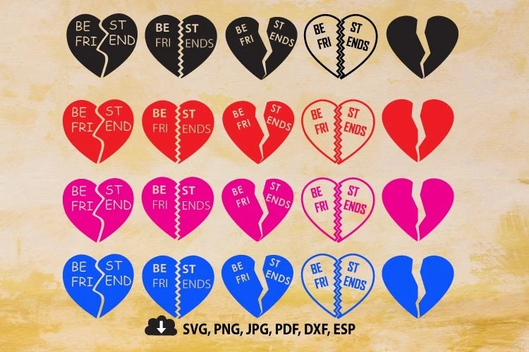 Best Friends Svg, Broken Heart, Besties Clipart, Friends, Friendship Bundle, Friends Split Heart, Best Friends Silhouette, Cut file