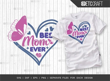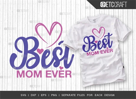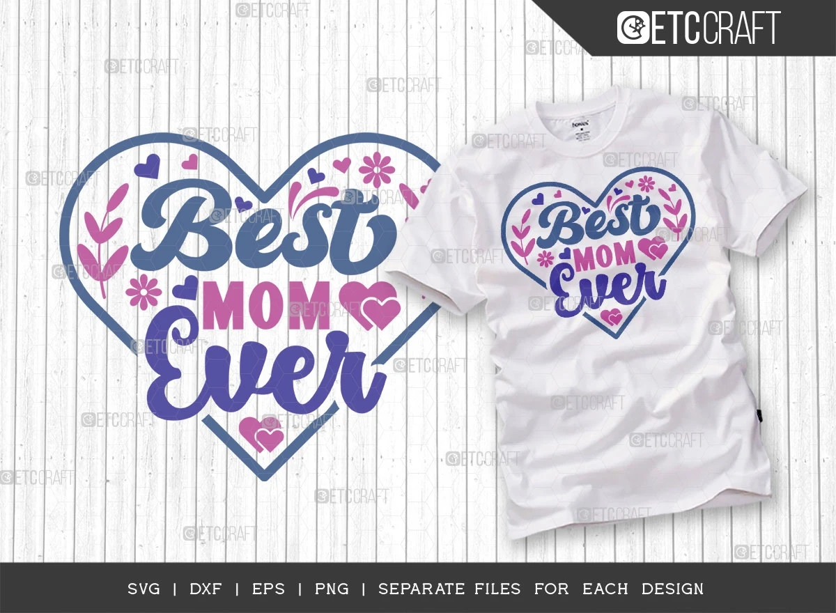 Celebrate the remarkable bond between mothers and their children with our "Best Mom Ever SVG Bundle" t-shirt design. This exclusive bundle is designed to showcase the love and appreciation we have for the best mothers in our lives. Whether you're a proud son, daughter, or even a spouse looking to surprise your beloved mom, this collection is the ultimate gift that she will cherish forever.