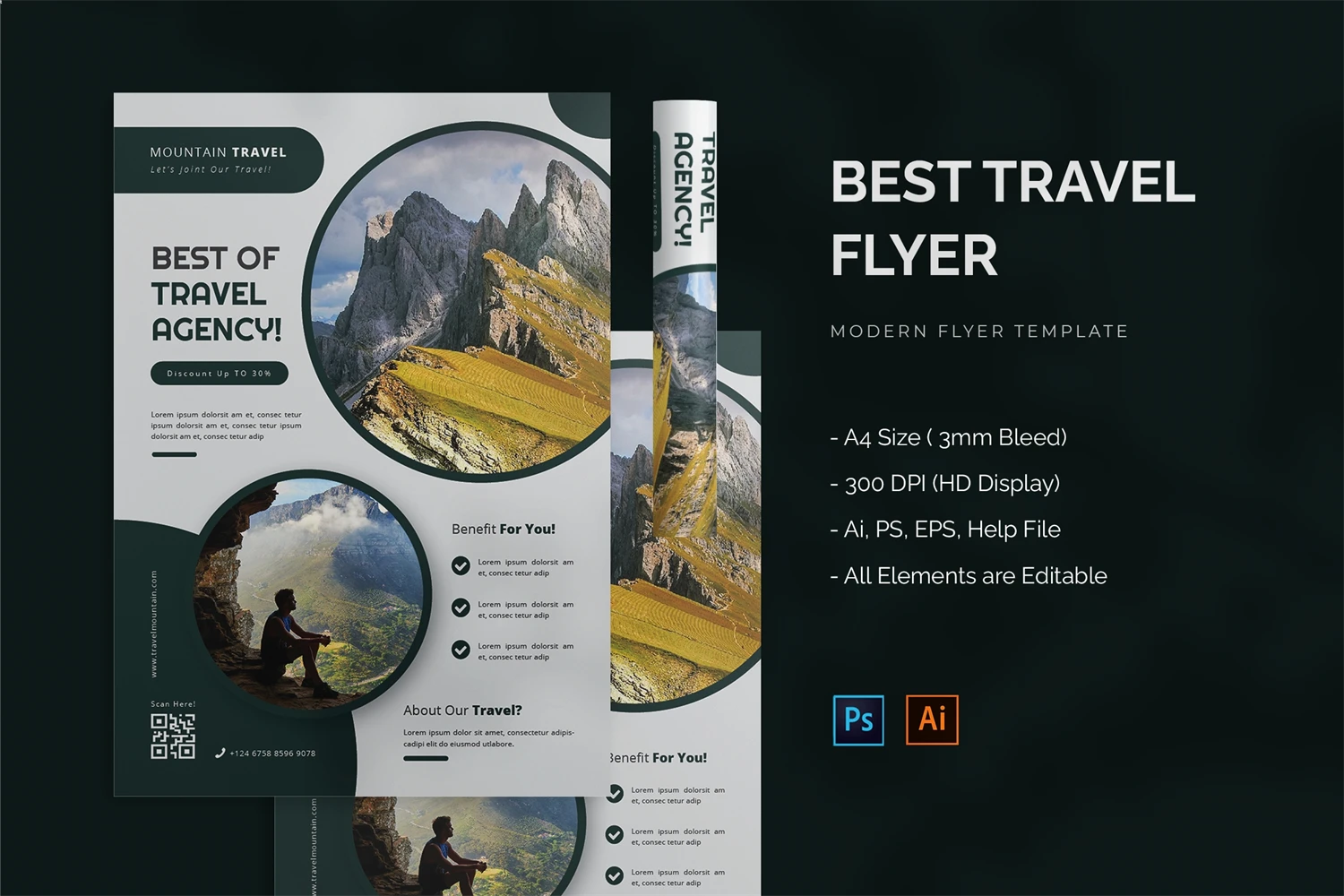 Best Travel - Flyer. This Flyer template is designed for your company's business needs. very clean and elegant, and also easily edited and adjusted to your liking