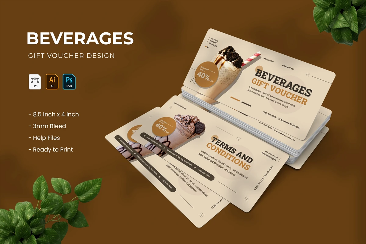 With this Gift Voucher Card, you can get the word out about your salon, spa, cosmetics store, health food store, pharmacy, hospital, boutique, fashion store, shopping mall, and more. This Gift Voucher Template is fully editable and customizable. You can add your product or service image and details of your offering very easily and quickly. Also, you have the option of changing colors and backgrounds. This gift template design will save you both time and money.