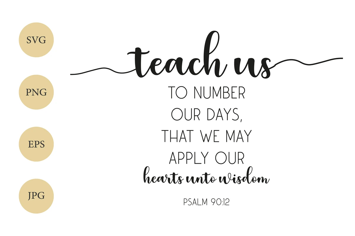 Bible Verse SVG, Psalm 90:12 SVG, Scripture SVG, Christian SVG, Religious SVG, T-shirt Design File, Cricut Cut File, Digital Download