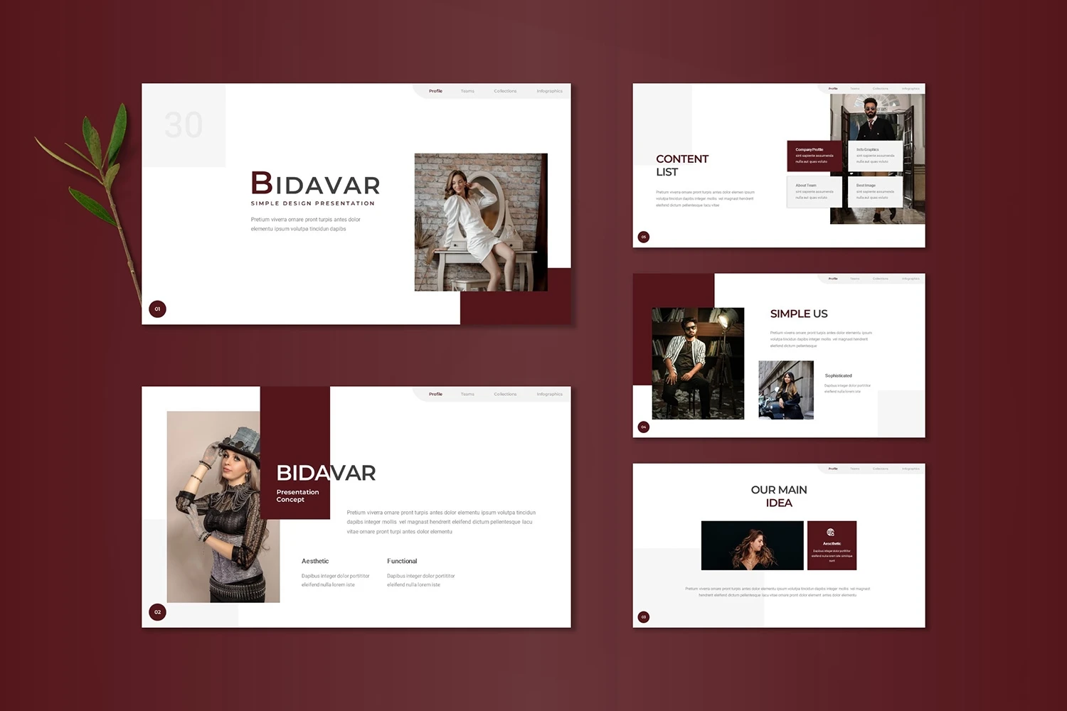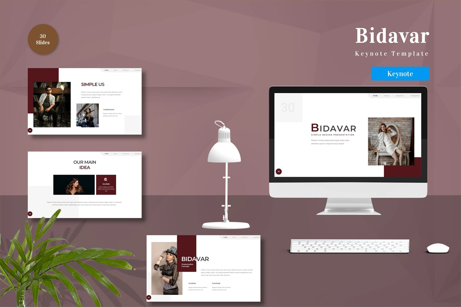 Get it now! **Bidavar - Keynote Template** for All Business and Personal Needs All elements on this template are editable; input your content, replace your image with a placeholder, change the color, and all presentations include an animated slide to present your slides.