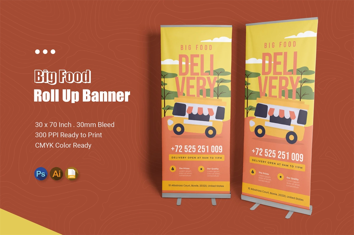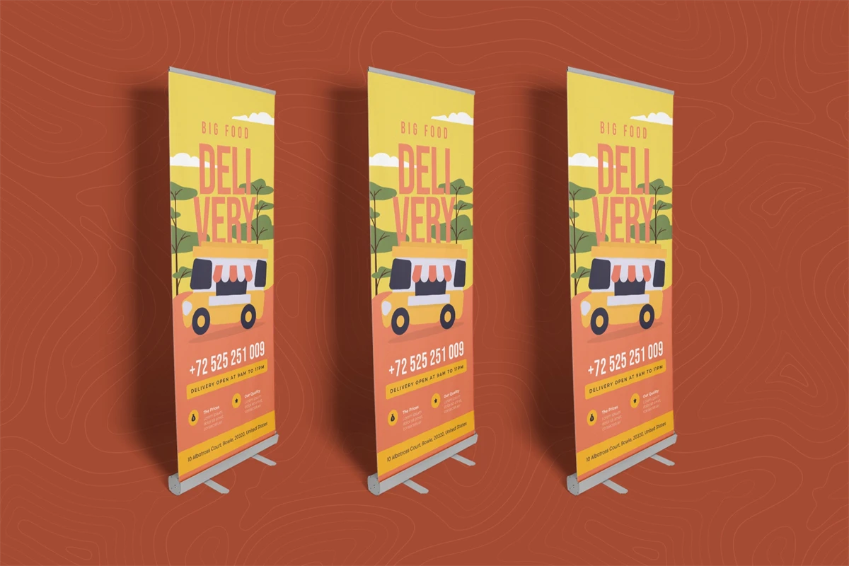 The versatile roll up banner template is very easy to use, modify and customize. Use this roll up banner and make the most of your campaign!