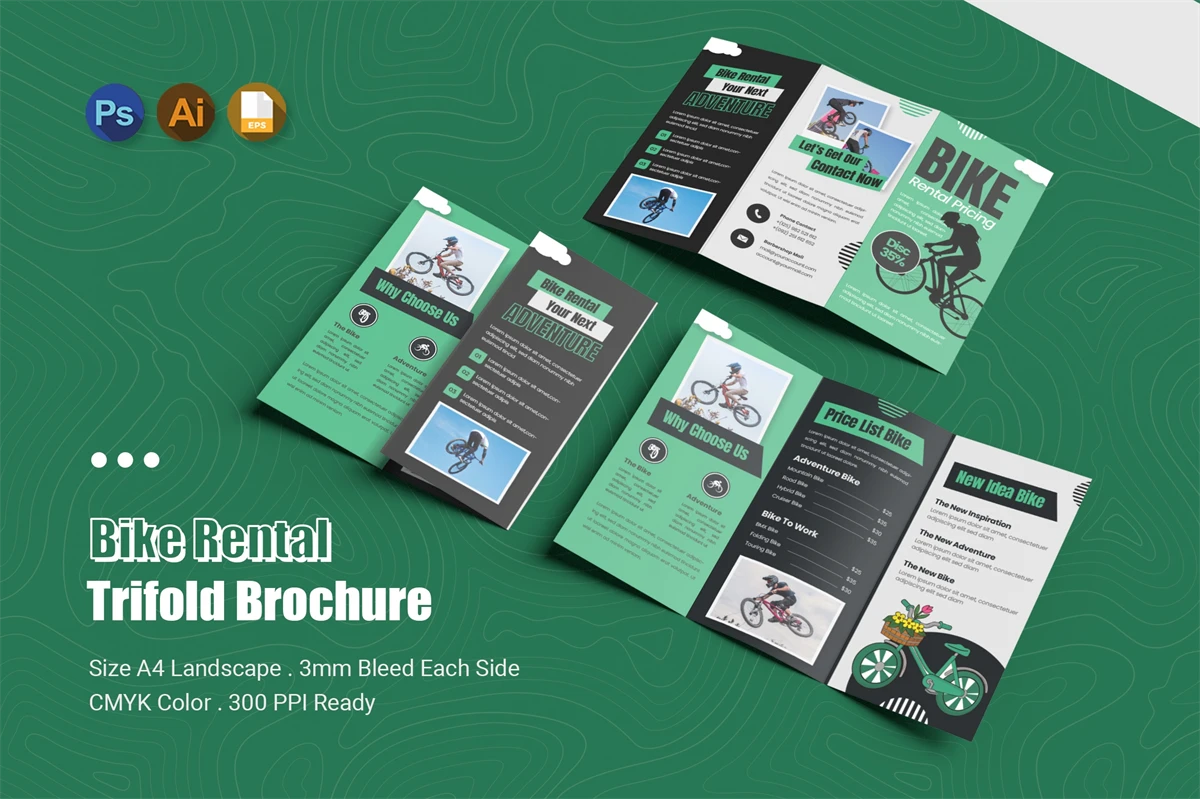 **Bike Rental Pricing Trifold Brochure**