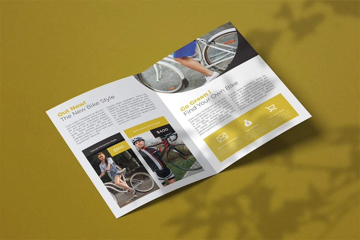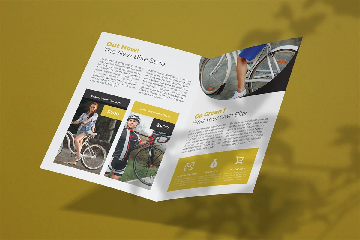 Bike Track - Bifold Brochure We present this Bifold Brochure for you, simple and very elegant, and this Bifold Brochure is suitable for all types of your business, made with adobe inDesign, very easy to customize, Hope you Like it, dont forget to rate, Thanks.