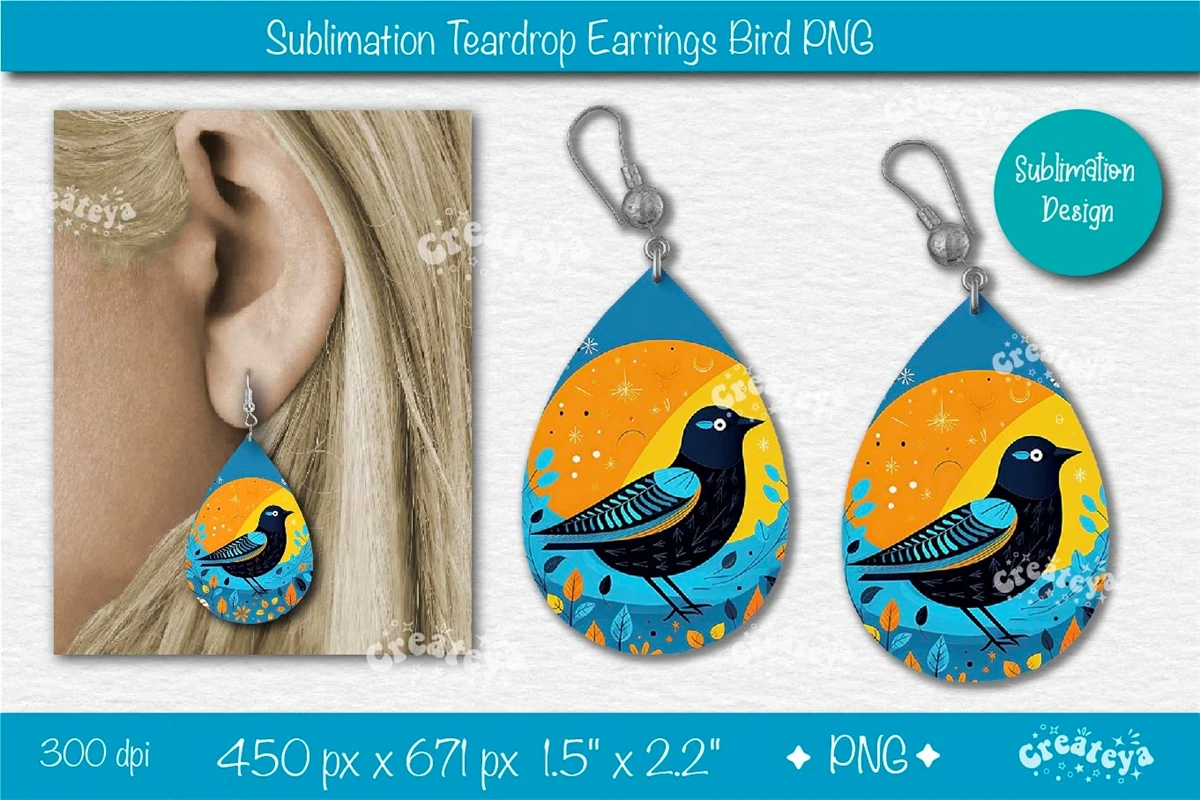 Blue Bird earring Teardrop sublimation teardrop earring sublimation design is perfect for summer teardrop earrings. Country style, farmhouse Folk style Teardrop earring sublimation PNG.