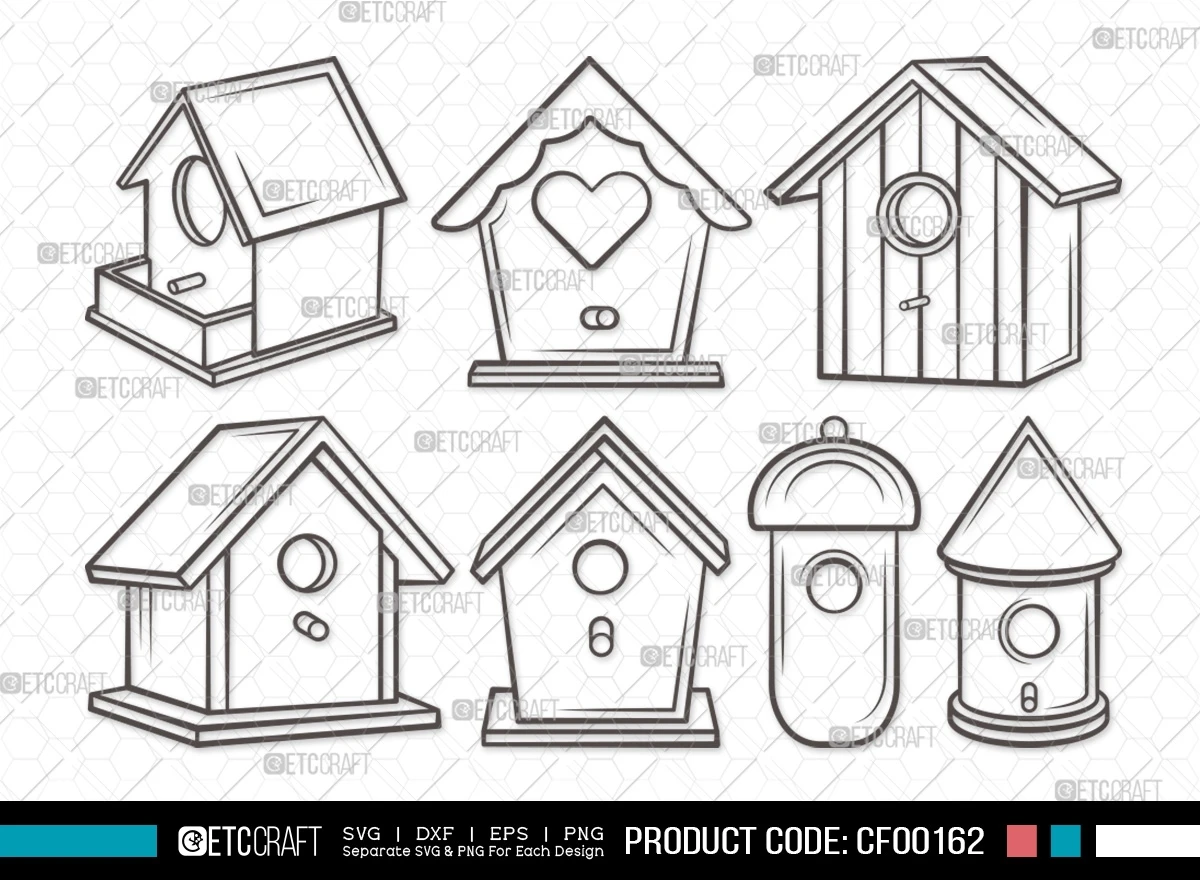 Explore the beauty of nature and creativity with our Bird House Outline Wooden Nesting Box Bird Home SVG Cut File Bundle. This digital collection is carefully curated to bring a touch of the outdoors into your artistic endeavors, making it a perfect choice for nature lovers and crafting enthusiasts.