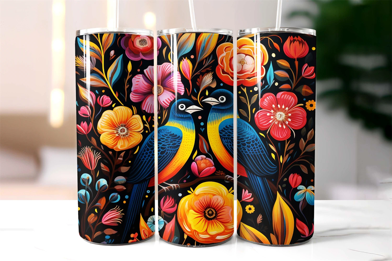 folk flowers tumbler