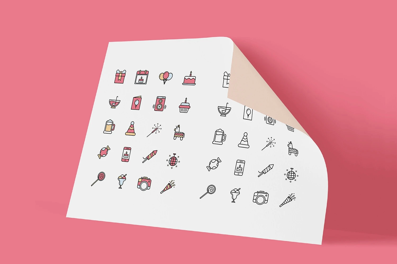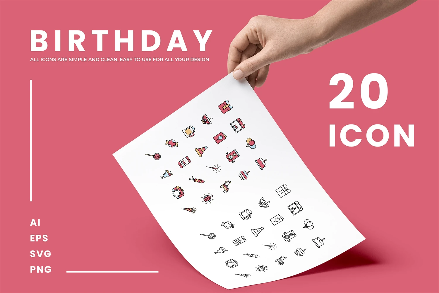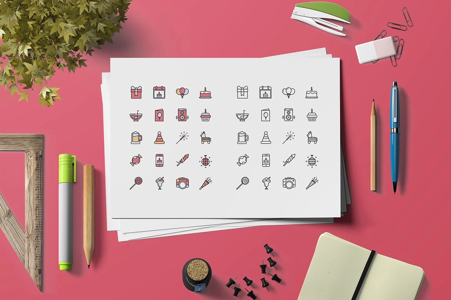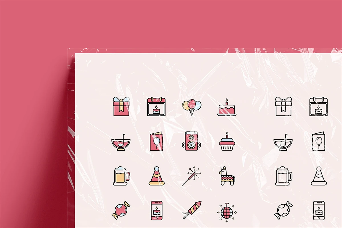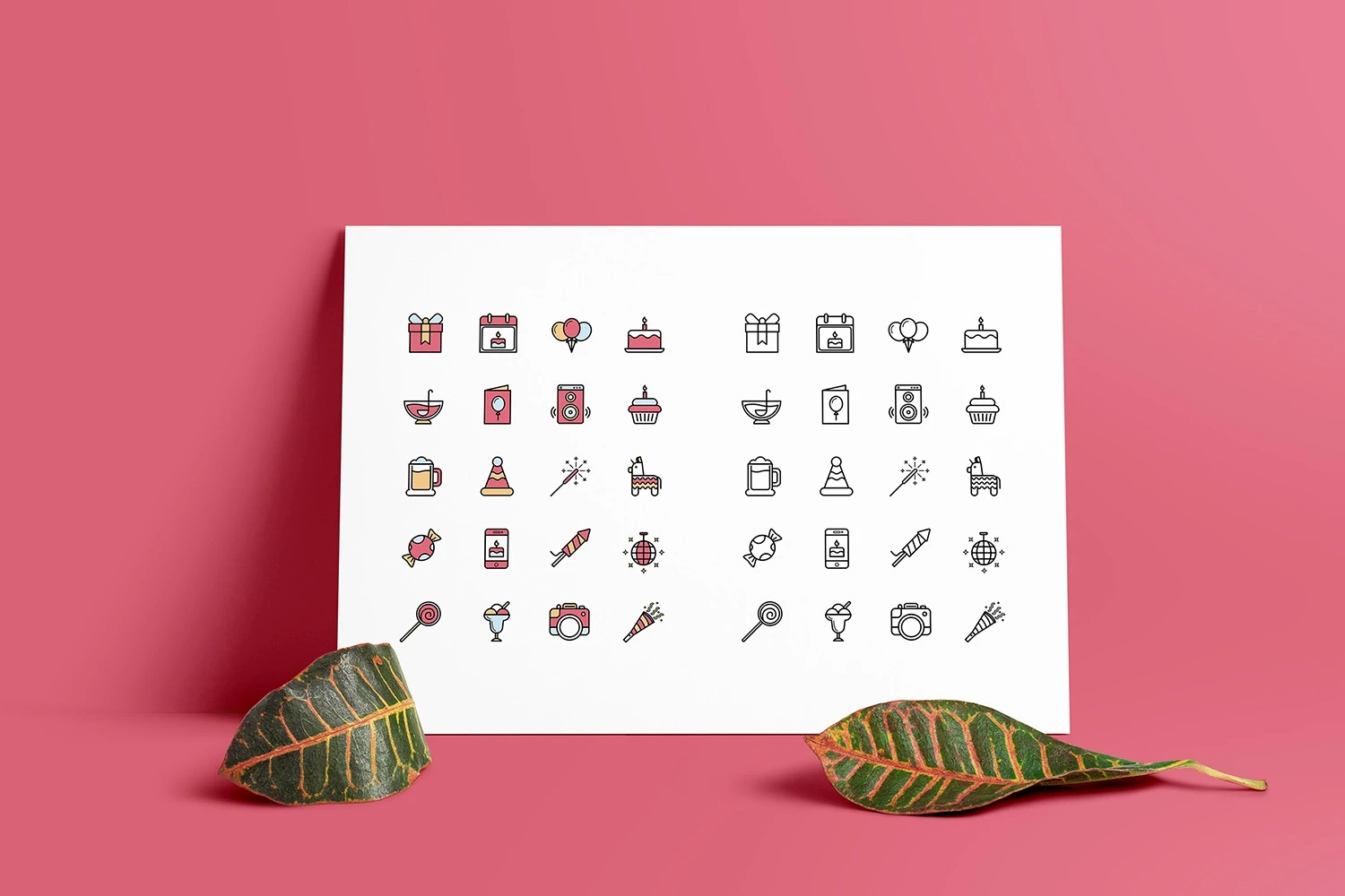 Don't miss it Birthday - Icons This professional Icons pack, high quality, for professional designers, easy to use, fully editable & customizable in Adobe Illustrator