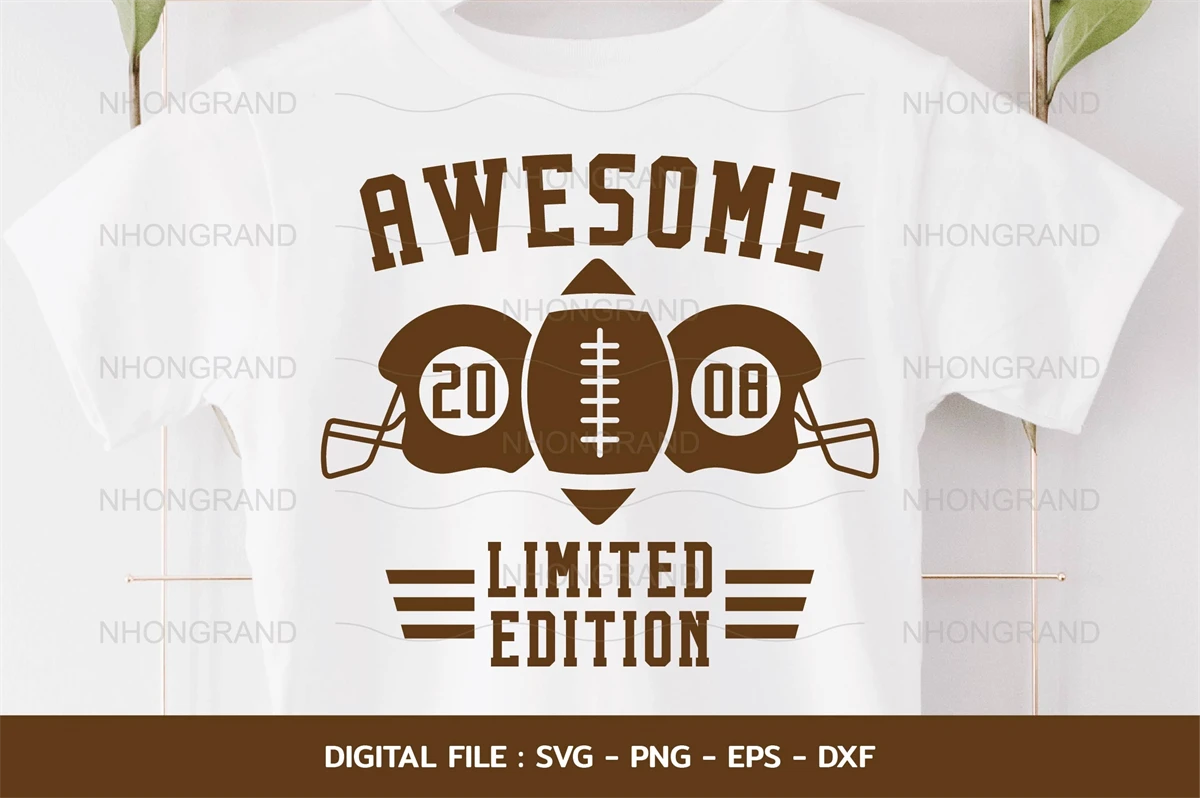 birthday awesome 2008 limited edition football helmet Sport Boy Girl, lover gift t-shirt, Cricut Files, svg, png, eps, dxf, Instant Download