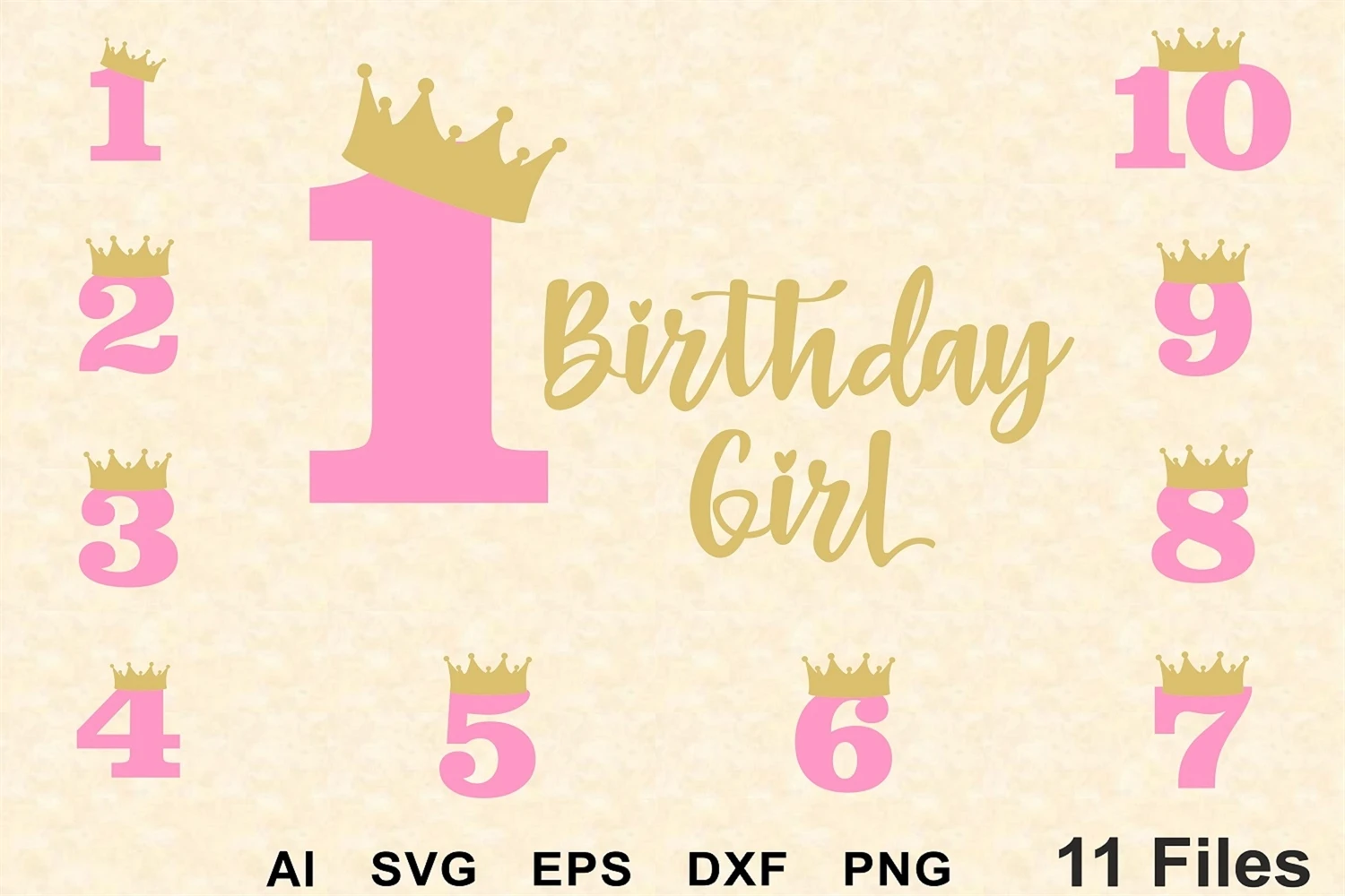 Birthday Girl Svg - Crowned numbers svg - Birthday Party svg