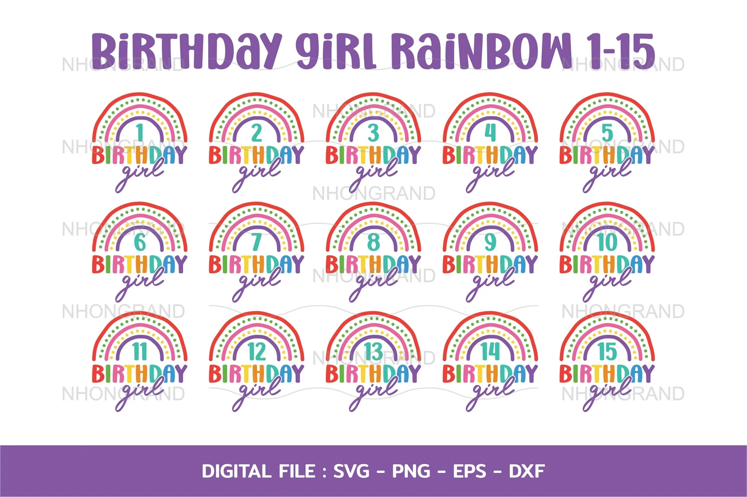 birthday girl with rianbow cutie girl number 1-15years, lover gift t-shirt, Cricut Files, svg, png, eps, dxf, Instant Download