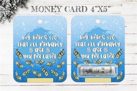 Usage: Print & cut the design you wish to use. Please remember to insert the amount of money you are going to use before printing or you can just write it down with a marker after the print was completed. Add cash to the lip palm pouch(those can be ordered from amazon) and glue it to the surface of the card on the box between the dollar signs. Gift it to your loved ones!