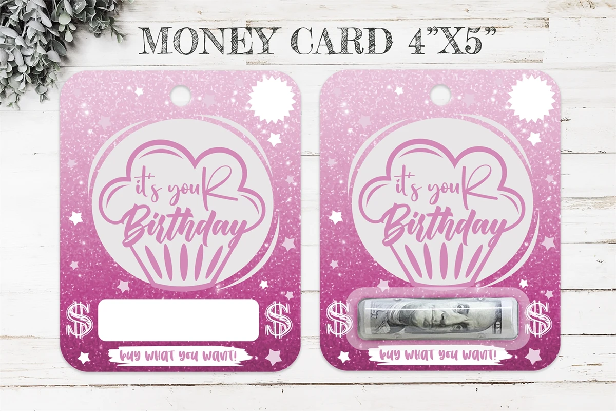 Usage: Print & cut the design you wish to use. Please remember to insert the amount of money you are going to use before printing or you can just write it down with a marker after the print was completed. Add cash to the lip palm pouch(those can be ordered from amazon) and glue it to the surface of the card on the box between the dollar signs. Gift it to your loved ones!