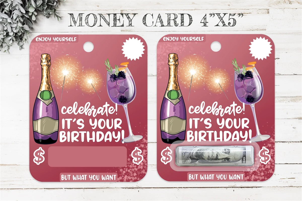 Usage: Print & cut the design you wish to use. Please remember to insert the amount of money you are going to use before printing or you can just write it down with a marker after the print was completed. Add cash to the lip palm pouch(those can be ordered from amazon) and glue it to the surface of the card on the box between the dollar signs. Gift it to your loved ones!