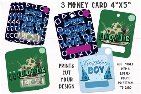 Usage: Print & cut the design you wish to use. Please remember to insert the amount of money you are going to use before printing or you can just write it down with a marker after the print was completed. Add cash to the lip palm pouch(those can be ordered from amazon) and glue it to the surface of the card on the box between the dollar signs. Gift it to your loved ones!