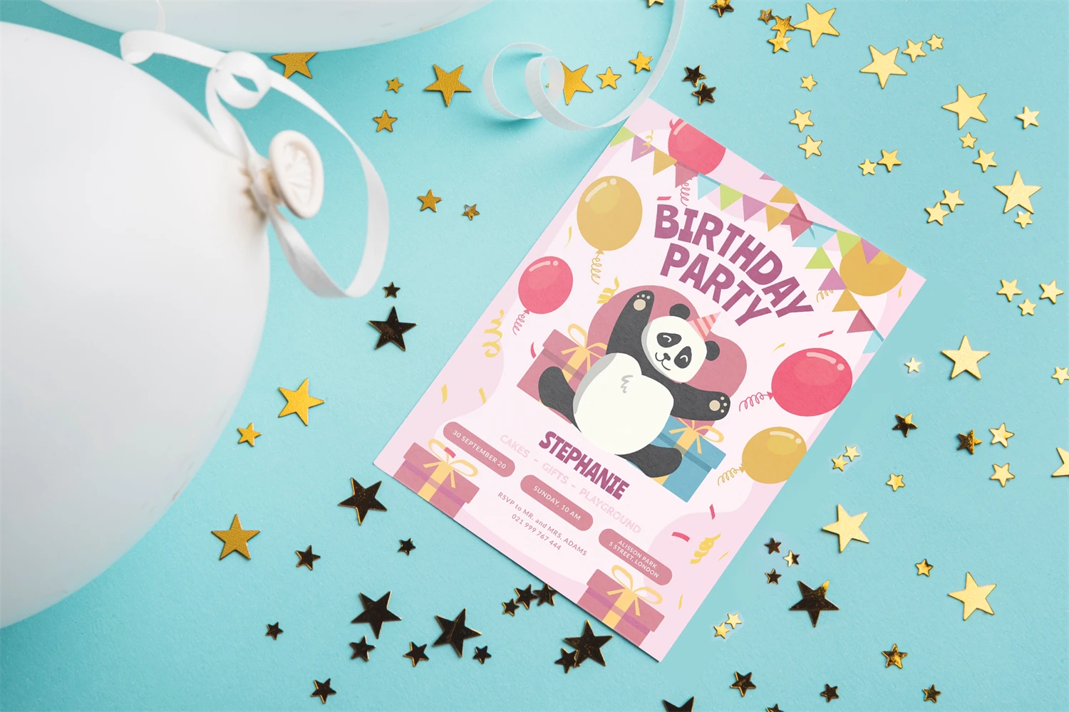 Birthday Panda - Kids Birthday Invitation, is an invitation card leaflet, poster design, etc. Simple and very elegant You can easily edit & adjust each design because each layer such as text, images and shapes are well organized and highlighted.