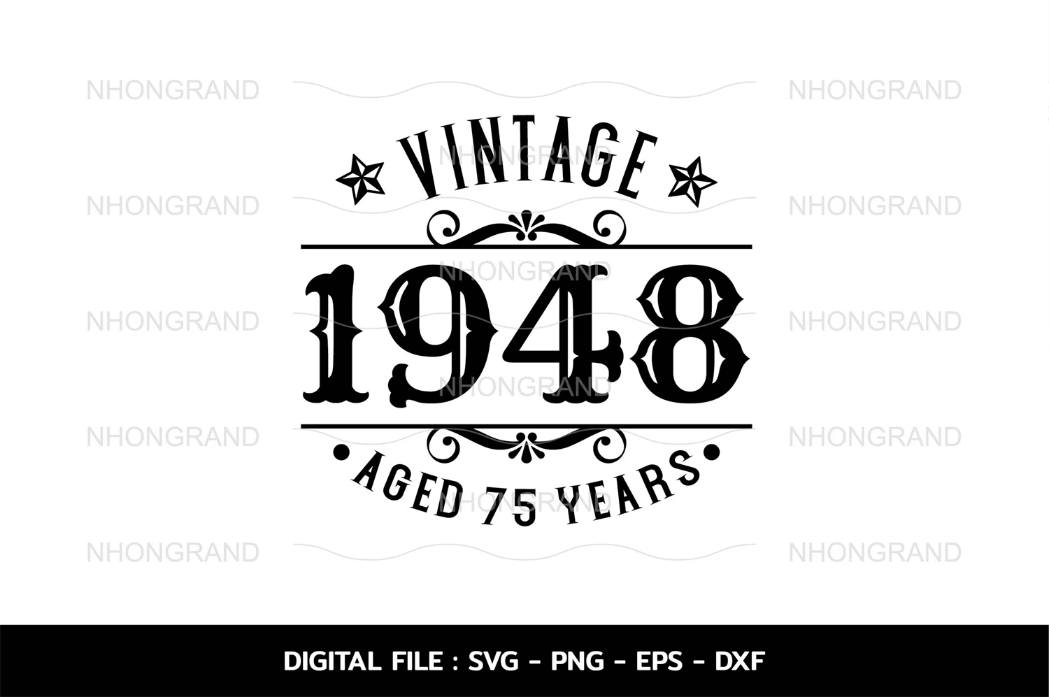 Birthday Vintage 1948 Svg, Aged 75years, Birthday premium quality, t-shirt, Cricut Files, svg, png, eps, dxf, Instant Download