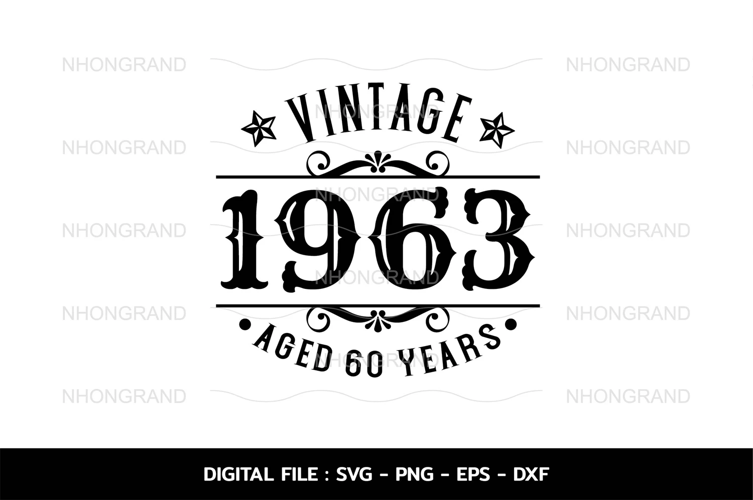 Birthday Vintage 1963 Svg, Aged 60years, Birthday premium quality, t-shirt, Cricut Files, svg, png, eps, dxf, Instant Download