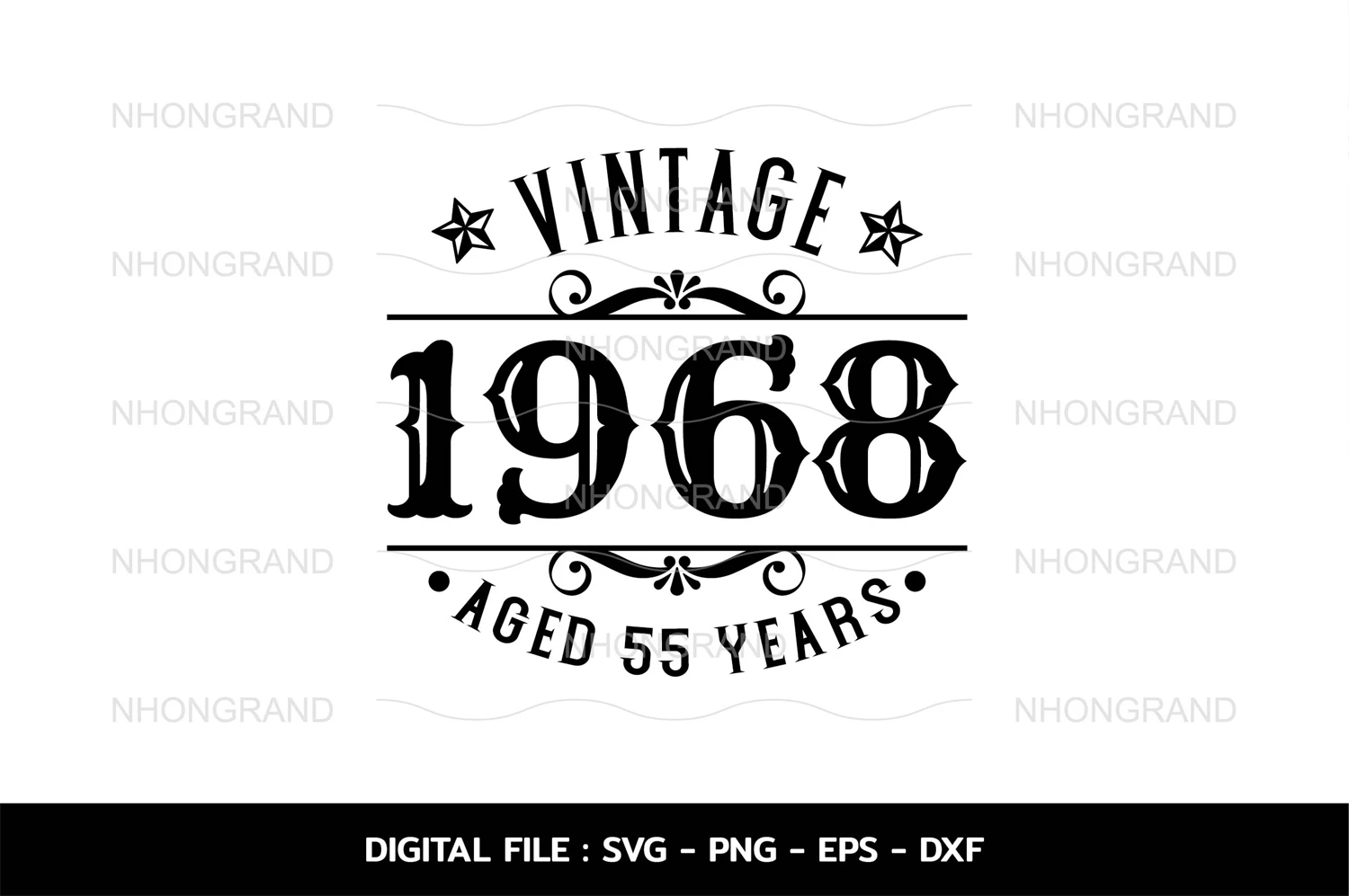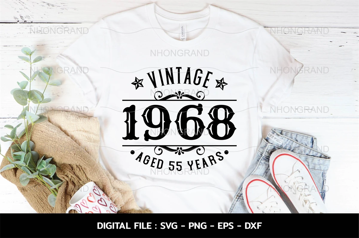 Birthday Vintage 1968 Svg, Aged 55years, Birthday premium quality, t-shirt, Cricut Files, svg, png, eps, dxf, Instant Download