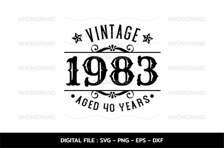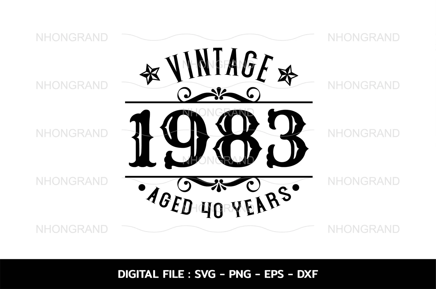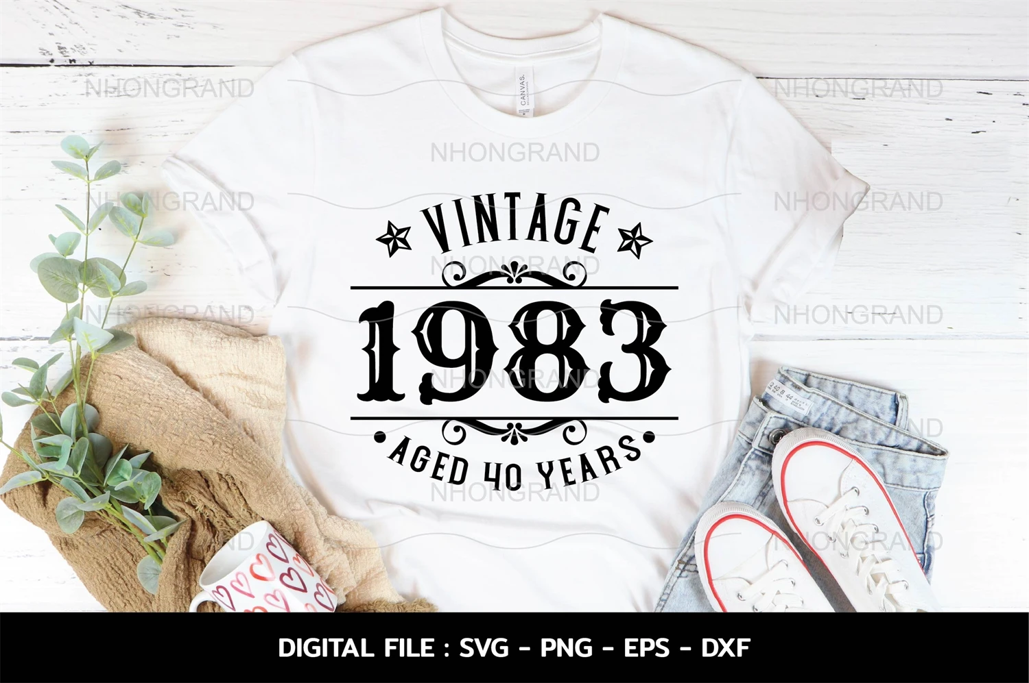 Birthday Vintage 1983 Svg, Aged 40years, Birthday premium quality, t-shirt, Cricut Files, svg, png, eps, dxf, Instant Download