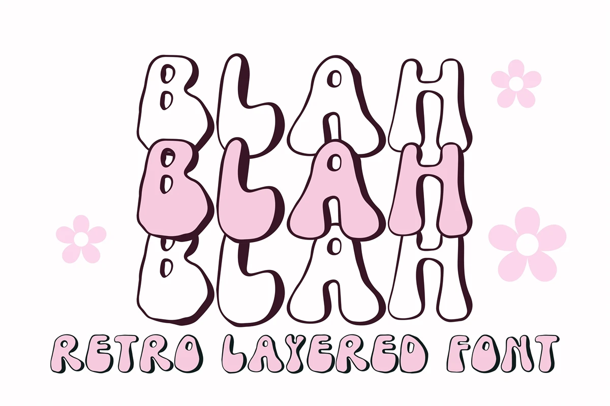 Blah Blah Blah is a retro layered display font. It is perfect for any hippie design that requires a groovy look.