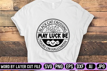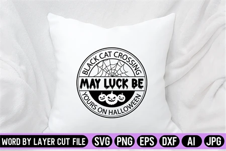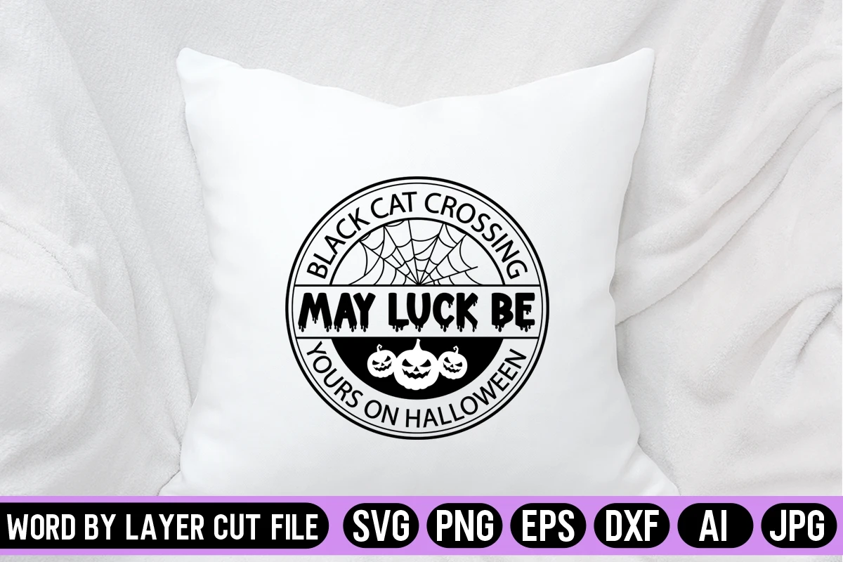 Black Cat Crossing May Luck Be Yours On Halloween SVG Round