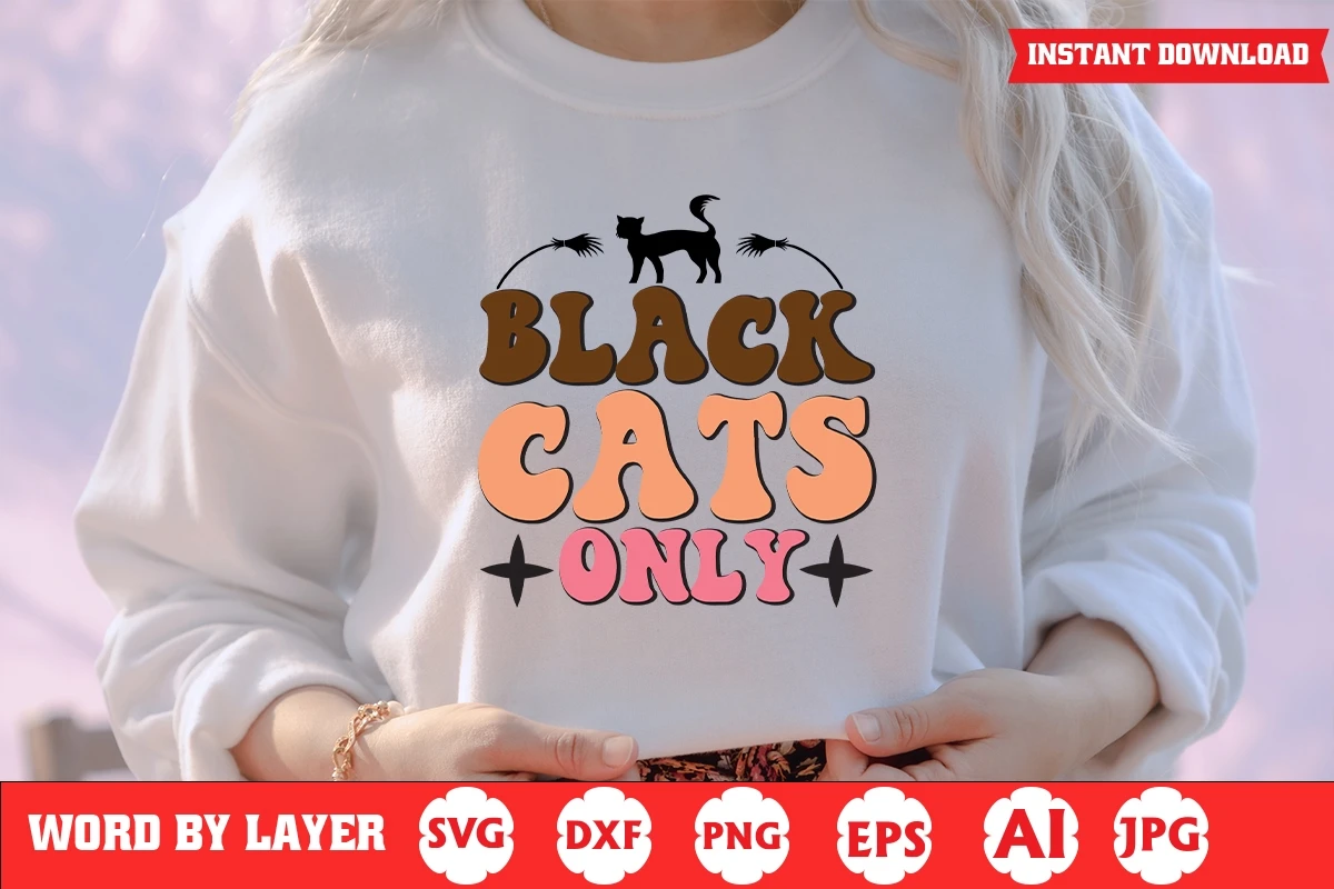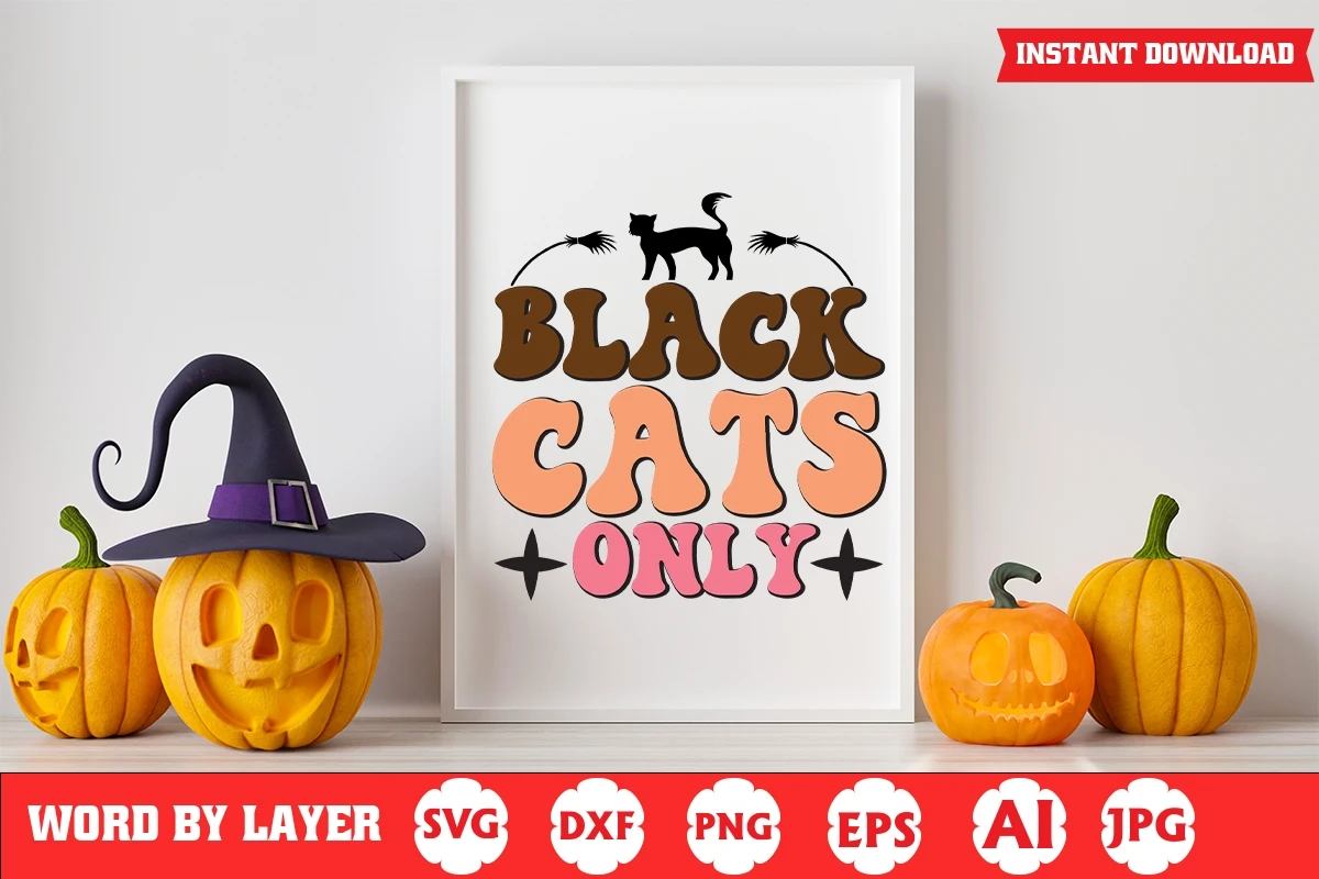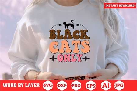 Black Cats Only Halloween Retro SVG Design