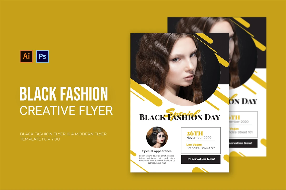 Black Fashion - Flyer. This Flyer template is designed for your company's business needs. very clean and elegant, and also easily edited and adjusted to your liking