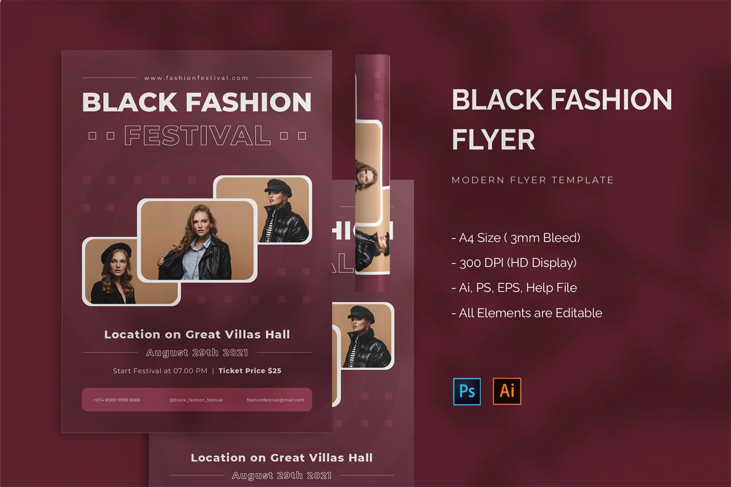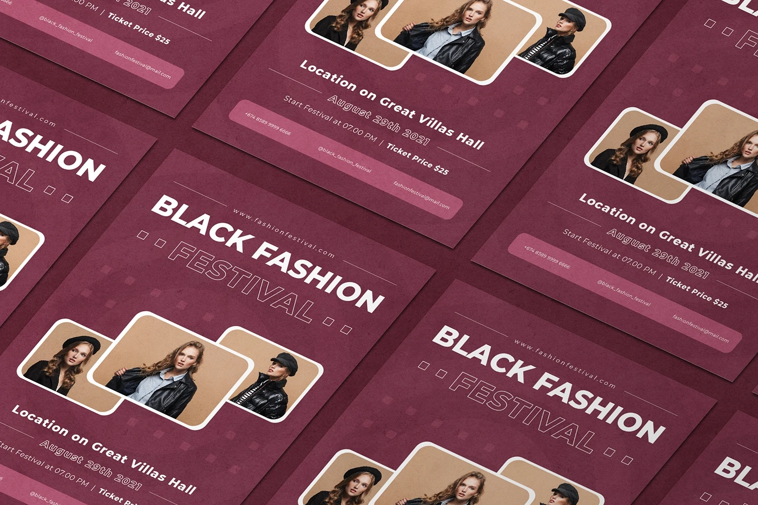 Black Fashion - Flyer. This Flyer template is designed for your company's business needs. very clean and elegant, and also easily edited and adjusted to your liking
