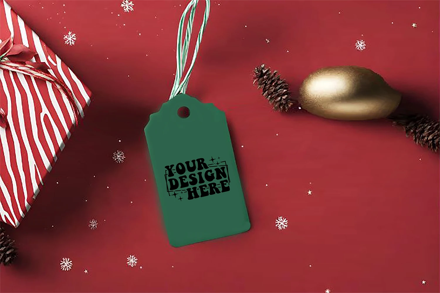 A Christmas gift tag mockup is a realistic digital or physical representation of a blank t-shirt design. It serves as a template for showcasing custom designs, logos, or artwork on a Christmas gift tag mockup , helping designers and businesses visualize how their ideas will look on the final product before production. Mockups can vary in complexity, from simple flat images to 3D models worn by virtual models or placed in real-life settings, offering a versatile tool for design and marketing purposes.
