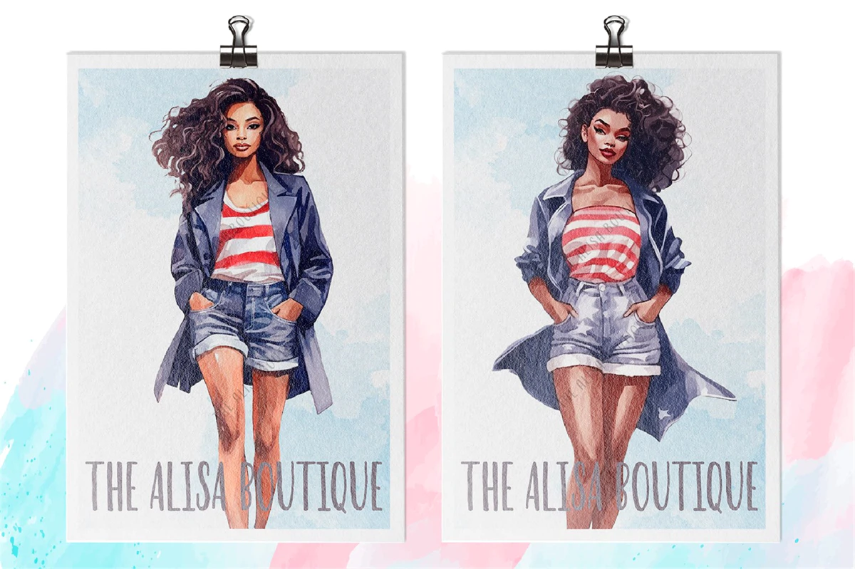 Discover the empowering world of American Black Girl Boss Fashion Clip Art! Celebrate the spirit of American girl bosses and embrace the essence of 4th of July with our stunning collection. From kawaii designs to coffee-inspired art and trendy black girl fashion, our PNG files are perfect for adding a touch of uniqueness to your creative projects. Explore our selection and unlock your creativity today!